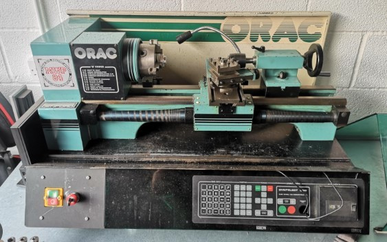 Denford Orac. with 3 paw power chuck (air operated) This machine is in mid conversion to use a 990Tb controller (Fanuc clone) It has the spindle encoder fitted and wired up, It has upgraded new NEMA 34 hybrid stepper motors. There is a good quality siemens Micromaster VFD. It has an 8 position tool changer with a small pcb to convert the greyscale to an output for the controller. There is also a fitted Denford table with drawers for the tooling. All the mechanical work has been completed apart from fitting the control box. Otherwise there is still some wiring to be done.